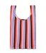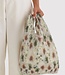 To minimize waste and increase durability, our reusable bags are assembled from one continuous piece of recycled nylon material, with the neck of the bag used to construct the carrying pouch.